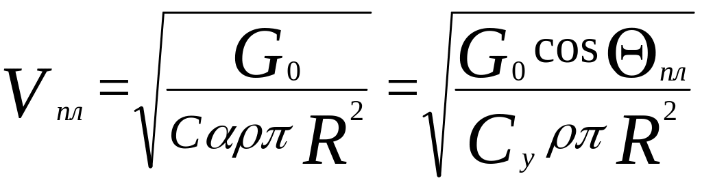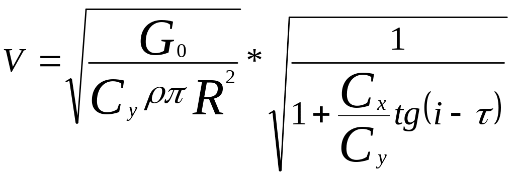 Отсюда определяем погребную скорость горизонтального полета автожира: