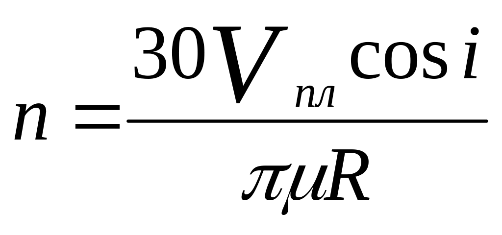 Подставляя в формулу (59) скорость планирования из уравнения(61) получим обороты ротора при планировании: