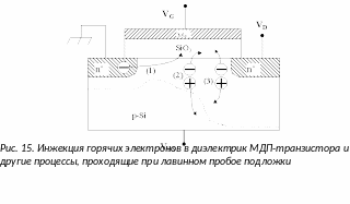 или над барьером "горячих" носителей, разогретых в поперечном или продольном поле при пробое кремниевой подложки.