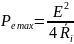 Мощность Pe равна нулю как при коротком замыкании, так и при разомкнутой цепи. Максимальная полезная мощность Pe max достигается, когда R1 = Ri, при так называемом согласовании сопротивлений источника и нагрузки. В этом случае