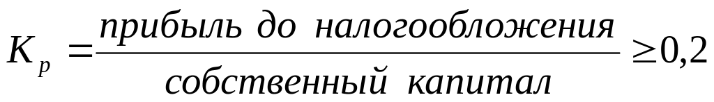 Рентабельность собственного капитала, характеризует, прибыль до налогообложения на 1 рубль собственного капитала: