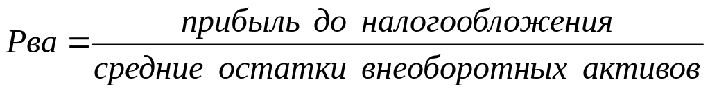 Данный показатель отражает эффективность использования внеоборотных активов предприятия. Определяет величину прибыли, приходящейся на один рубль, вложенный во внеоборотные активы. При расчёте и анализе этого показателя следует оценить реальную стоимость внеоборотных активов, имеющихся на балансе предприятия (так как их оценка может быть занижена), и долю активной части основных средств, участвующих в производственном процессе и, соответственно, приносящих прибыль.