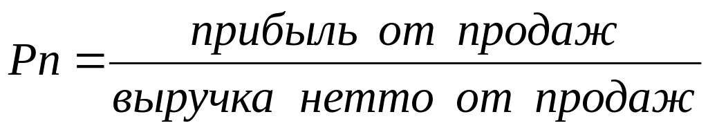 Она отражает соотношение прибыли от продаж к выручке, полученной в отчётном периоде. Определяет, сколько рублей прибыли получено предприятием в результате продажи продукции (товаров, услуг, товаров) на один рубль выручки. Оптимальным является пропорциональный рост показателей в числителе и в знаменателе.