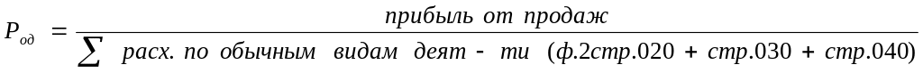 Она отражает соотношение прибыли от продаж к выручке, полученной в отчётном периоде. Определяет, сколько рублей прибыли получено предприятием в результате продажи продукции (товаров, услуг, товаров) на один рубль выручки. Оптимальным является пропорциональный рост показателей в числителе и в знаменателе.