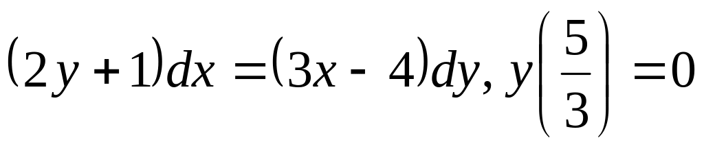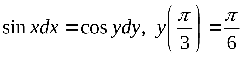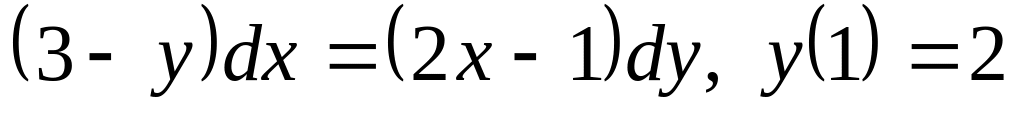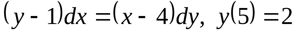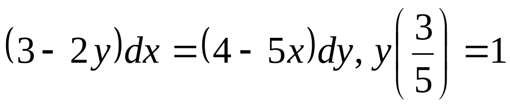 ДУ3. Для уравнений с разделяющимися переменными найдите частное решение (в виде неявно заданной функции) при указанном начальном условии: