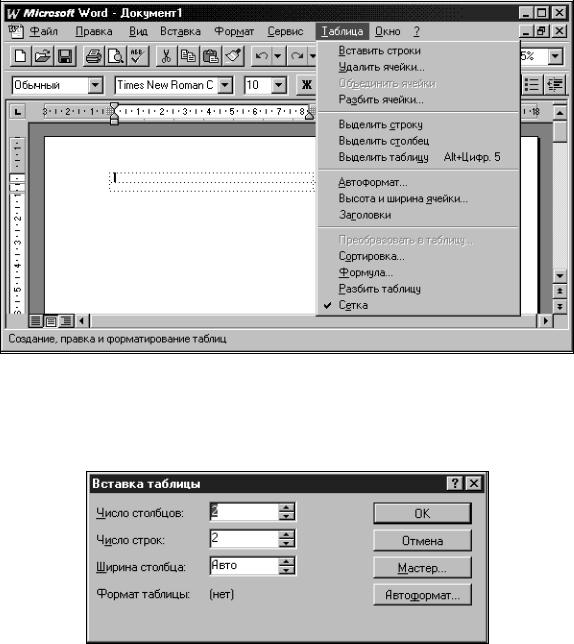Для создания таблицы используется команда «Таблица/Вставить таблицу…», которая выводит на экран диалоговое окно «Вставка таблицы» (рисунок 5).