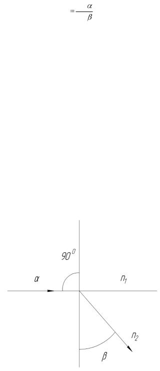Согласно закону преломления, отношение синусов углов падения sin α и преломления sin β – есть величина постоянная для каждого вещества; её называют показателем преломления n: