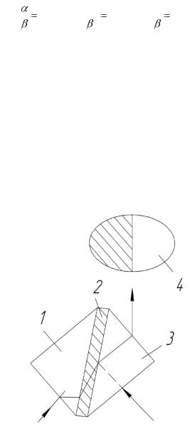 1 – осветлительная призма; 2 – слой анализируемой жидкости; 3 – измерительная призма; 4 – поле зрения в измерительной трубе