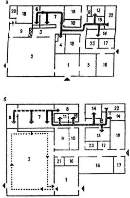 10– кладовые продуктов; 11 – охлаждаемые камеры; 12 – загрузочная;