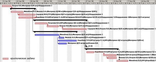 Рисунок 36 – Диаграмма Ганта с критическими задачами проекта