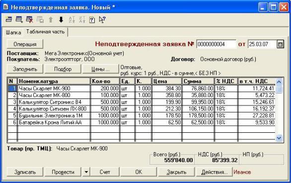 Оформите неподтверждённую заявку ООО «Электронный супермаркет» (см. рис. 49).