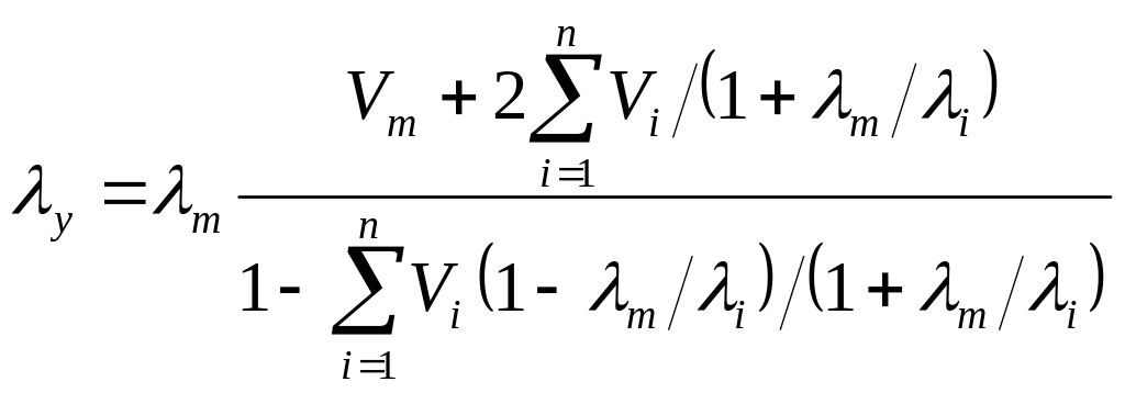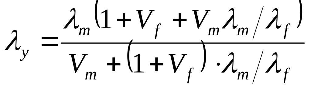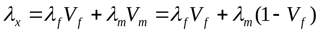 Коэффициент теплопроводности x однонаправленных композиционных материалов вдоль оси волокон определяется по формуле: