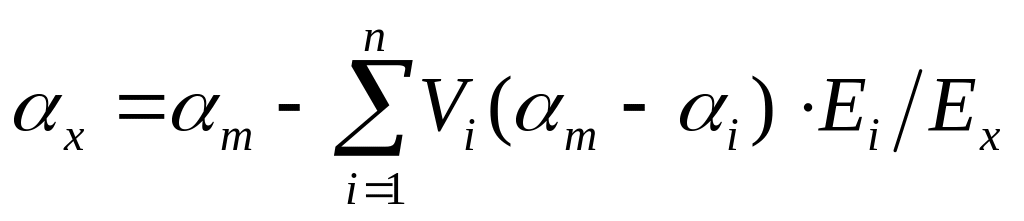 Продольный коэффициент термического расширения полиармированных композиционных материалов, содержащих n сортов сплошных волокон, определяется выражением: