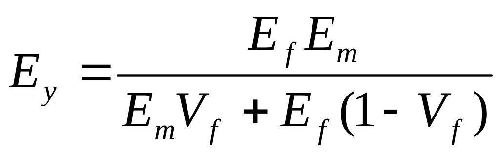 где Ef, Em – модуль упругости волокон и матрицы соответственно; Vf, Vm – объемная доля волокон и матрицы соответственно.