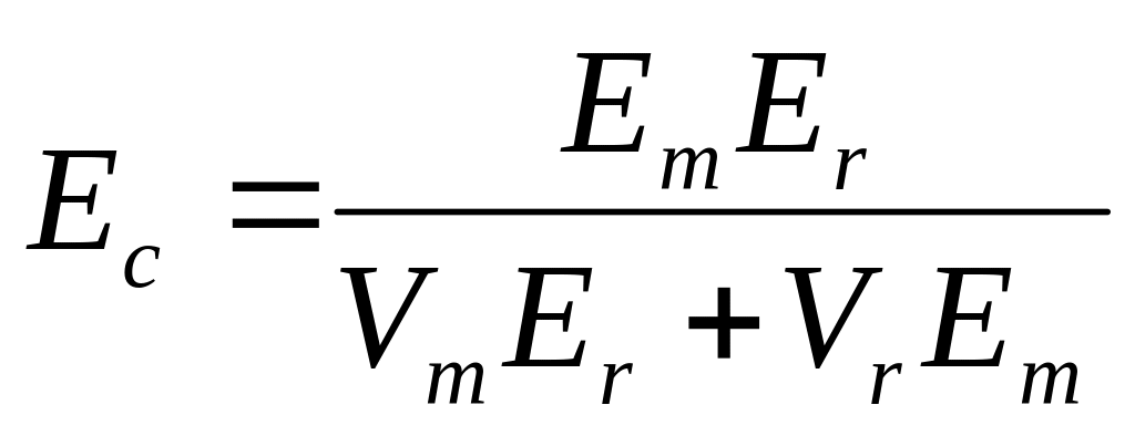 где Ec – модуль упругости композита, Еm – модуль упругости матрицы; Еr – модуль упругости армирующего компонента; Vm – объемная доля матрицы в композите; Vr – объемная доля армирующего компонента в композите.