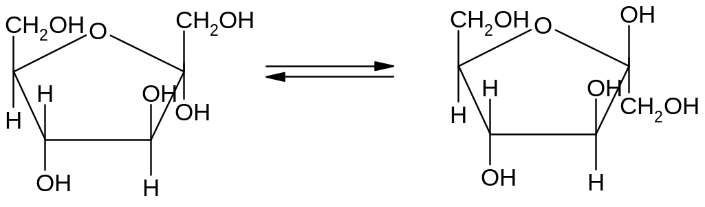 В действительности, моносахариды с 5 и более атомами углерода обычно встречаются в водном растворе в циклических формах, в которых карбонильная группа образует ковалентную связь с атомом кислорода гидроксильных групп. При образовании циклических структур формируются дополнительно два стереоизомера относительно атома углерода С-1. Циклические формы cахаров с 5 атомами углерода в цикле называются пиранозидами.