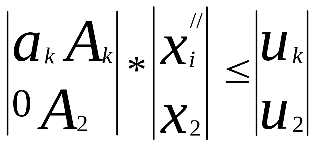 Для того, чтобы матрица А распалась на две независимые подматрицы (подсистемы), можно воспользоваться одним из методов декомпозиции, рассмотренных выше. Если целесообразно объединить подразделение минимизируемой структуры в соответствии с типом используемых им ресурсов (т.е. по функциональному признаку), то применяется разложение переменных xi на xi/ и xi//. Получаются две независимые подсистемы: первая оптимизирует x1 и xi/ при ограничениях