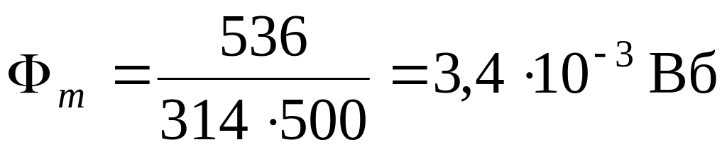 Определим рабочую точку устройства. Примем U1=380 В, U1m=536 B. По выражению (213) амплитуда магнитного потока равна: