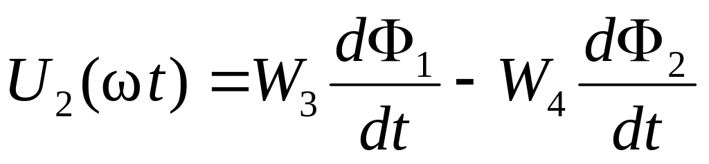 На выходе схемы (обмотки W3 и W4 включены встречно) получим: