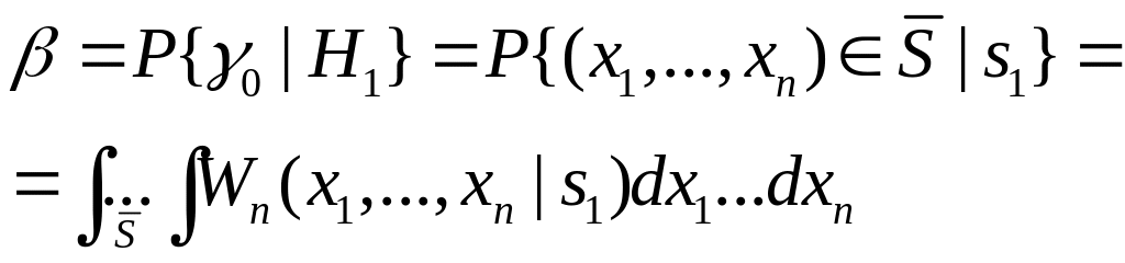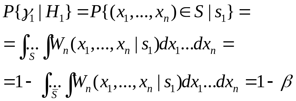 Условная вероятность правильного решения, состоящего в принятии верной гипотезы дополняет указанную вероятность до единицы, т. е.