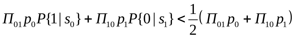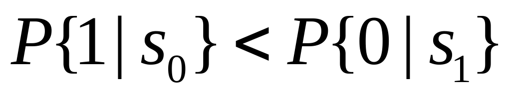 Другое правило формулируется так: наблюдаешь сигнал «0»— принимай решение (и, следовательно, когда наблюдаешь сигнал «1»— принимай решение ). В этом случае вероятности ошибочных решений равны