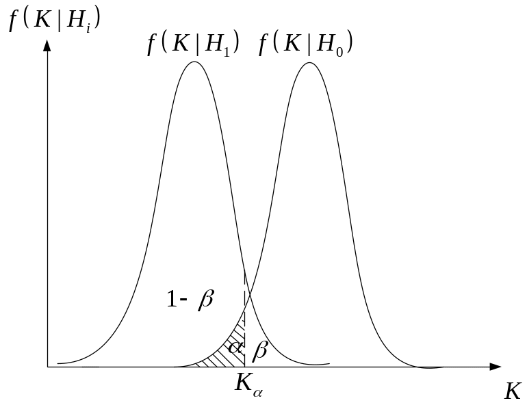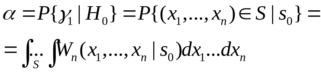 Замечание:В радиотехники вероятность ошибки первого рода называют вероятностью ложной тревоги, а вероятность второго рода – вероятностью пропуска цели.