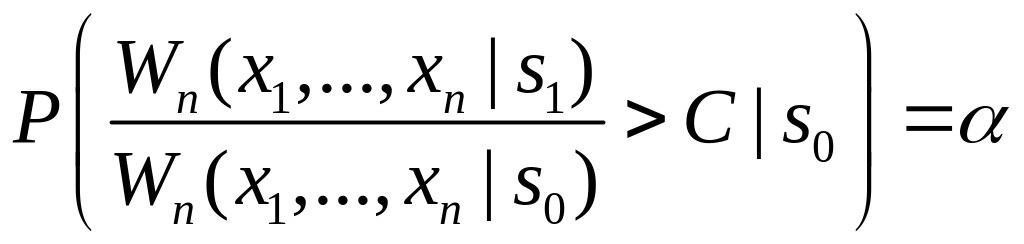Согласно теореме Неймана - Пирсона, существует такая константа С, зависящая только от , что критическая область наиболее мощного критерия имеет вид