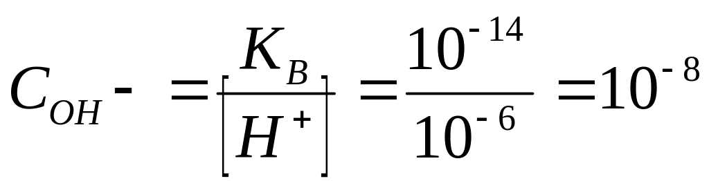 Величина ионного произведения постоянна не только для воды, но и для любых разбавленных водных растворов, в том числе для растворов кислот и щелочей. Поэтому, зная концентрацию ионов Н+, легко найти концентрацию ОН- и наоборот.