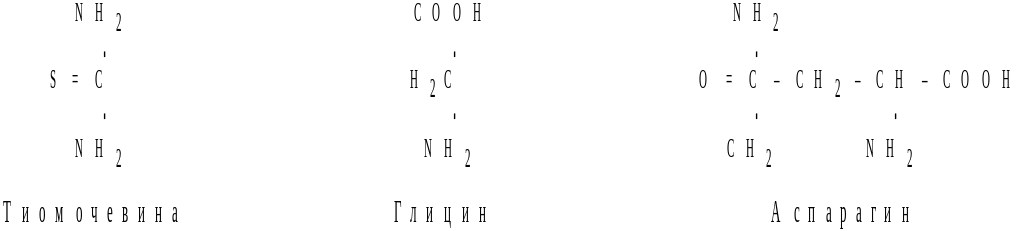 Определяем действие уреазы на ряд сходных по формулам веществ: мочевину, тиомочевину, глицин, аспарагин.