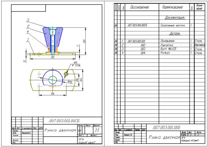 Рисунок А.13 – Сборочный чертеж «Ручка дверная». Спецификация