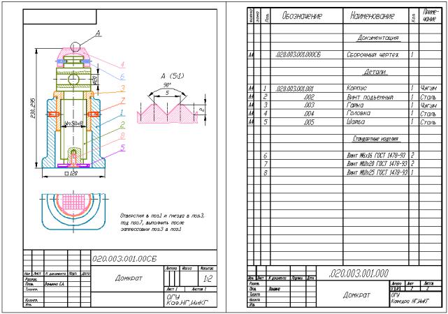 Рисунок А.39 – Сборочный чертеж «Домкрат». Спецификация