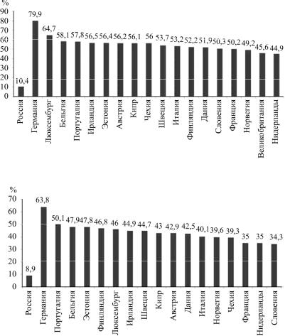 в2011 г. в России составляет 10,4 %, в то время как в ряде развитыхстранданныйпоказательпревышает50 % (рис. 7.2).