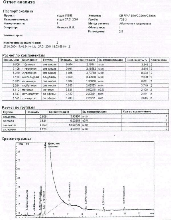 Анализ токсичных микропримесей в водке и спирте проводится на пределе чувствительности хроматографа, поэтому в ходе работы прибор должен обеспечивать высокую стабильность показаний по чувствительности, точности выполняемых анализов и надежность работы всей системы в целом.