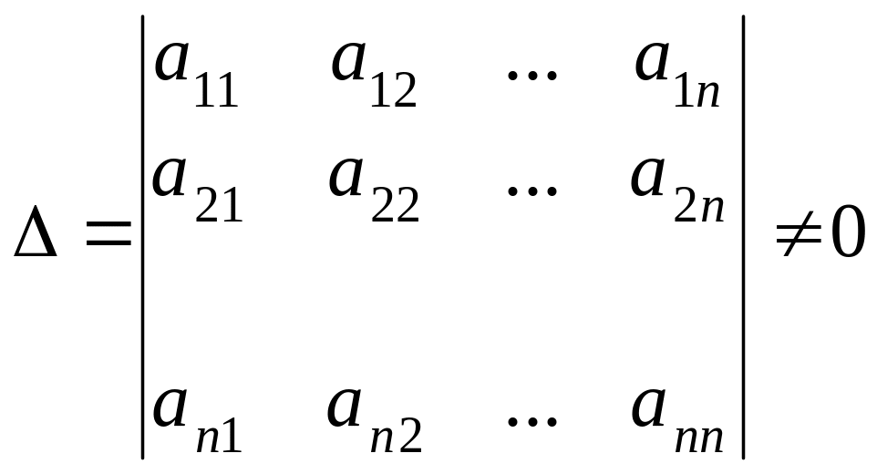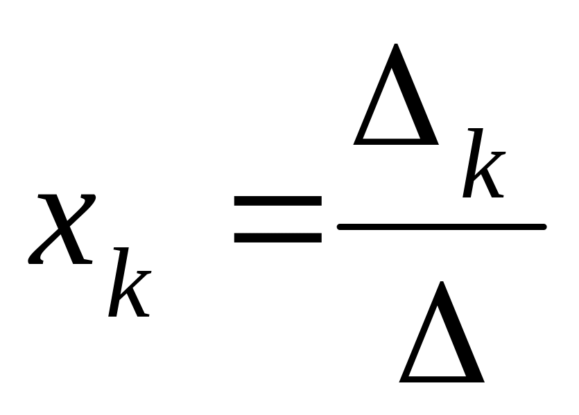 Правило Крамера. Если определитель системы (1) , то эта система совместна и определённа, т.е. имеет единственное решение, получаемое по формулам: