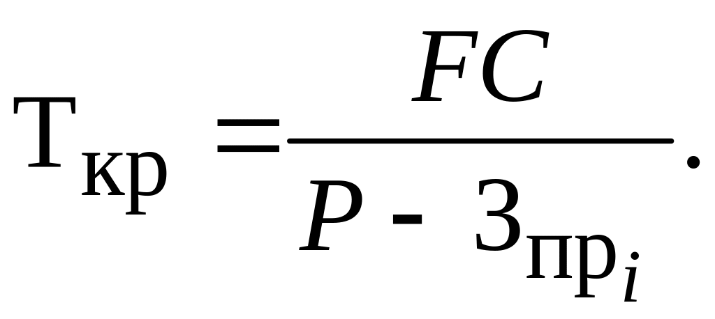 Определение точки критического объема производства Ткр имеет очень большое значение. После достижения этой точки предприятие начинает получать прибыль, т. е. точка Ткр объема производства является точкой перехода из одного состояния в другое. В точке Ткр объема производства нет прибыли и убытков.