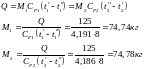 После решения уравнения теплового баланса определяются средние температуры теплоносителей, ºС: