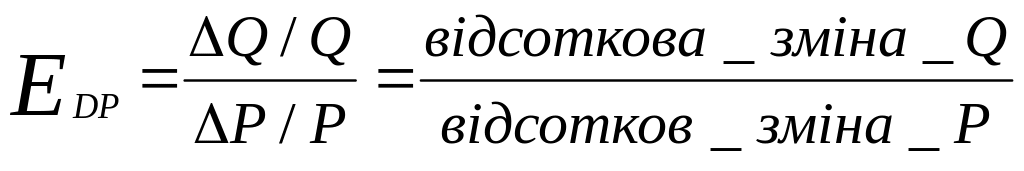 де ЕDP – цінова еластичність попиту; Q – язміна обсягу попиту; Р – зміна ціни.