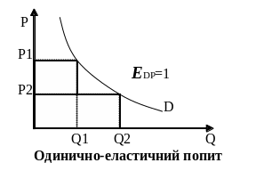 Попит одинично-еластичний, коли ЕDP1 (це означає, що попит зростає (спадає) відповідно до зміни ціни).