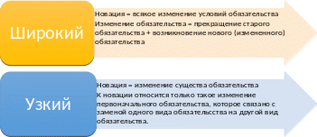 Позитивное право может обозначить свое отношение к широкому или узкому пониманию новации, но может оставить этот вопрос на разрешение доктрины и судебной практики. Российский закон скорее демонстрирует второй подход