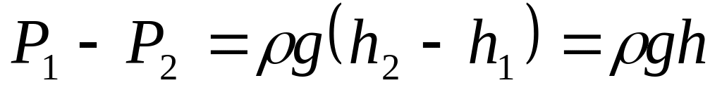 Если сосуды заполнены одной жидкостью, плотностью ρ, но давления над уровнем жидкости в них неодинаковы и равны Р1 и Р2: