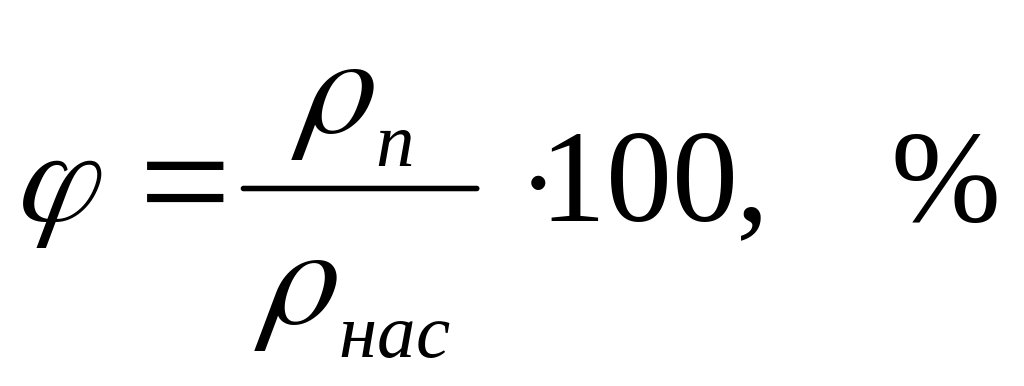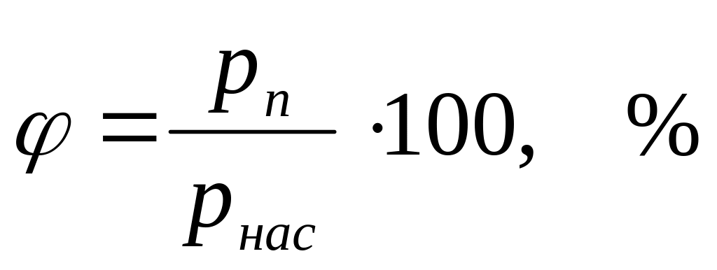 Чем больше водяного пара содержится во влажном воздухе, тем больше его парциальное давление. Однако рп во влажном воздухе не может быть выше давления насыщения рнас при данной температуре влажного воздуха, т.е. рп рнас.