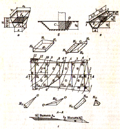 Подсчет объемов разрабатываемого грунта сводится к определению объемов различных геометрических фигур. При этом допускается, что объем грунта ограничен плоскостями, отдельные неровности не влияют значительно на точность расчета.