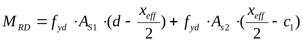 Формулы действительны при xeff≤ξlim·d, Для элементов выполненных из бетона классов С25/30 и ниже с арматурой классов S240, S400 и S500 при xeff>ξlim·d допускается производить расчет из указанного условия принимая xeff=ξlim·d.