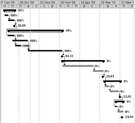 Рис. 8 Пример диаграммы Ганта для проекта, приведённого на рис. 7