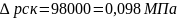 ∆pпод=𝜌gH=1000 кг/м³×9,82 м/с²×10 м=98200 кг/м²×с=0,0982 МПа