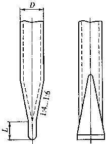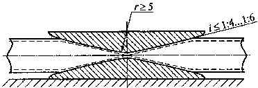 3.1.9. Сплющивание концов труб следует производить в горячем состоянии призматическими матрицами трапецеидального сечения с уклоном боковых граней около 1:4...1:6 (рис. 1) и радиусом сопряжения рабочих плоскостей не менее 5 мм.