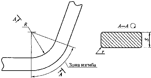 Изготовление деталей с меньшим радиусом кривизны должно производиться горячей гибкой.