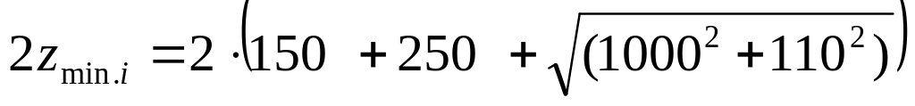 2zmin i = 2(150 + 250 + 1000 + 110) =2×1510 = 3020 мкм;