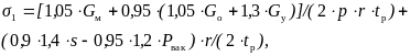 3.5.6.4. Меридиональное напряжение вычисляется для нижней кромки участка стенки постоянной толщины по формуле: