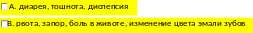 . тошнота, боль в эпигастральной области, диарея, запор